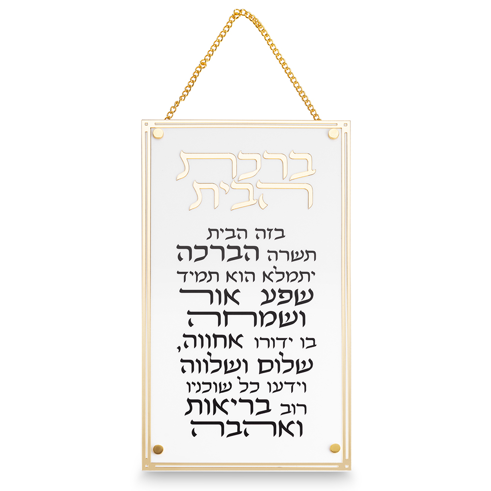 ברכת הבית מלבן אקריליק מסגרת זהב