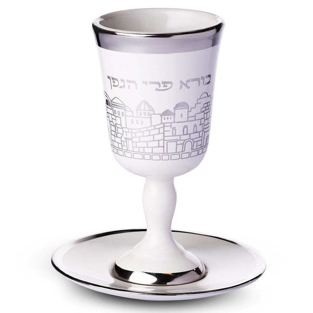 כמות של גביע קידוש מהודר מקרמיקה עם רגל ותחתית 15 ס"מ