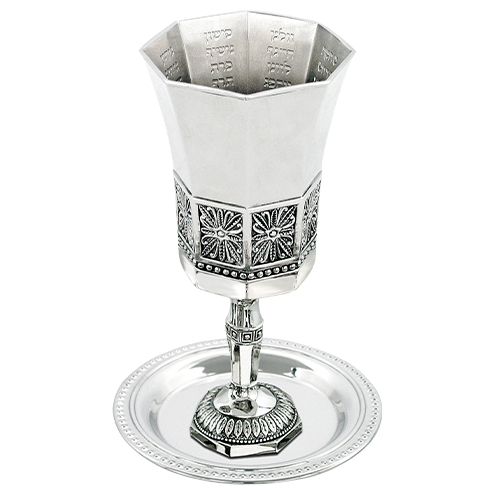 גביע קידוש גימור ניקל פיליגרין עם ברכה "ויכלו.." עם תחתית 15 ס"מ