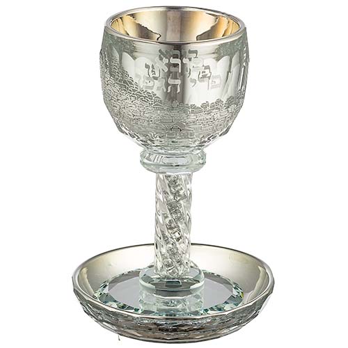 גביע קריסטל מהודר "ירושלים" עם אבנים כסף 16 ס"מ תכ