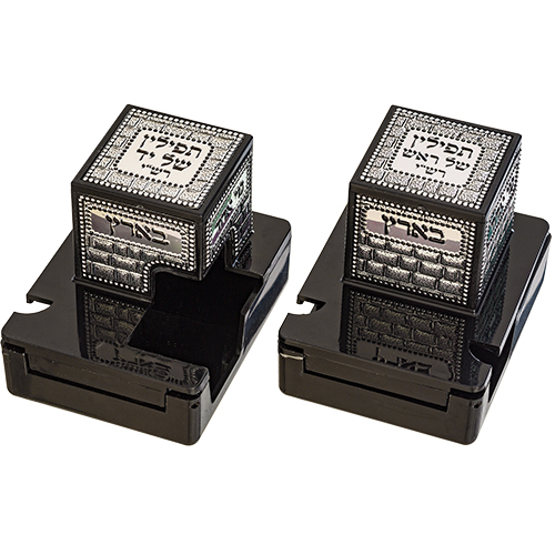 זוג בתי תפילין "מופת" פלסטיק כסוף עם פלקטה – מידה 36