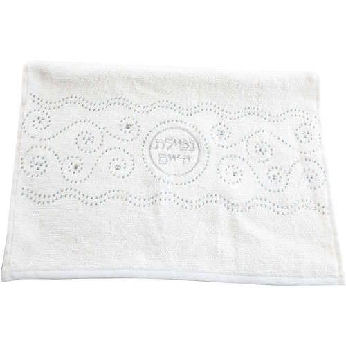 זוג מגבות לבנות "נטילת ידיים" עם שיבוץ אבנים מהודר