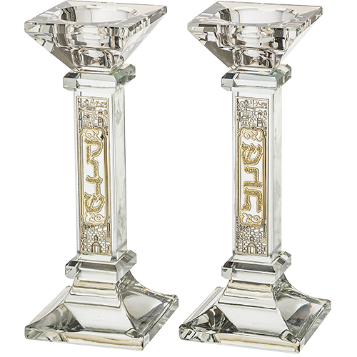 / זוג פמוטי קריסטל עם פלקטה "ירושלים" 16.5 ס"מ
