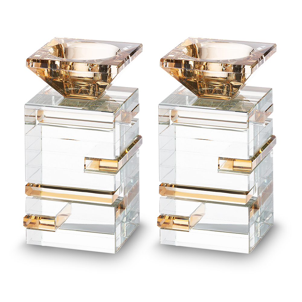 פמוטי קריסטל מהודרים עם אבנים 8.5 ס"מ