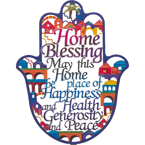 / חמסה "ירושלים" חיתוך לייזר, ברכת הבית אנגלית 24 ס"מ