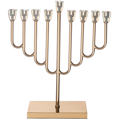 חנוכיית מתכת מהודרת ציפוי רוז גולד עם קנים מקריסטל
