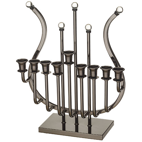 / חנוכיית מתכת "נבל" מהודרת ציפוי אוקסיד 36 ס