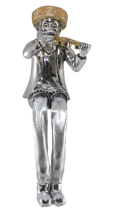 / חסיד יושב מפוליריזין מוכסף עם רגלי בד כסף מנגן