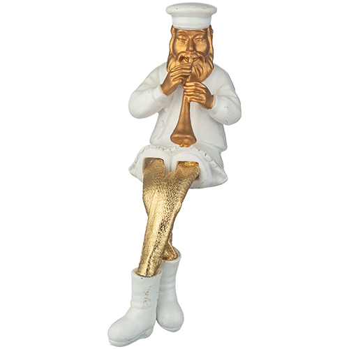 כמות של [[****חסיד יושב מפוליריזן לבן עם רגלי בד זהב 25 ס"מ מנגן בקלרינט