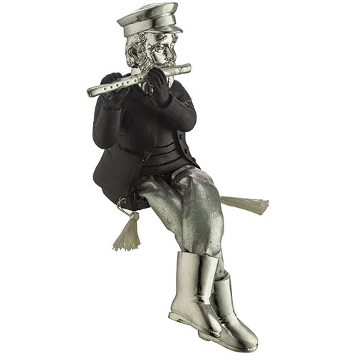 חסיד יושב מפוליריזן שחור עם כסף עם רגלי בד מנגן בחליל 19 ס"מ