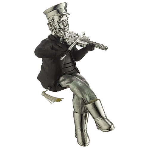 חסיד יושב מפוליריזן שחור עם כסף עם רגלי בד מנגן בכינור 19 ס"מ
