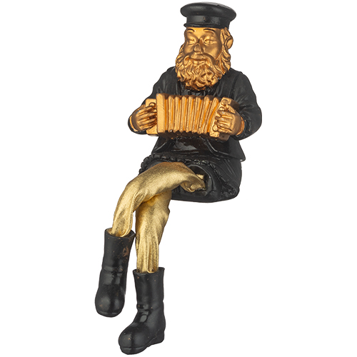 חסיד יושב מפוליריזן שחור עם רגלי בד זהב 25 ס"מ מנגן באקורדיון