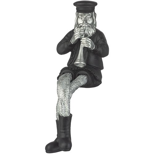 [[****חסיד יושב מפוליריזן שחור עם רגלי בד כסף 25 ס"מ מנגן בקלרינט