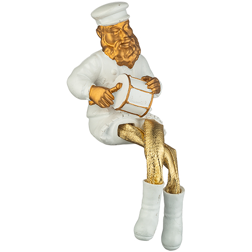 ****חסיד יושב מפולירייזן לבן עם רגלי בד זהב 25 ס"מ מנגן בתוף