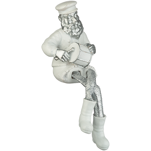 / ****חסיד יושב מפולירייזן לבן עם רגלי בד כסף 25 ס"מ מנגן בתוף