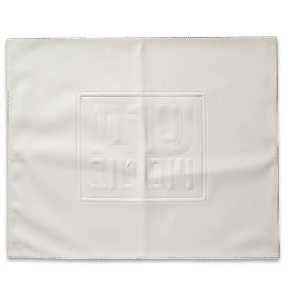 כיסוי חלה מהודר דמוי עור לבן עם הבלטות 42×52 ס"