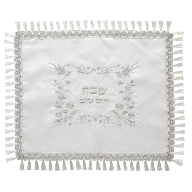 כיסוי חלה לבן מסטן מהודר 52×42 ס"מ