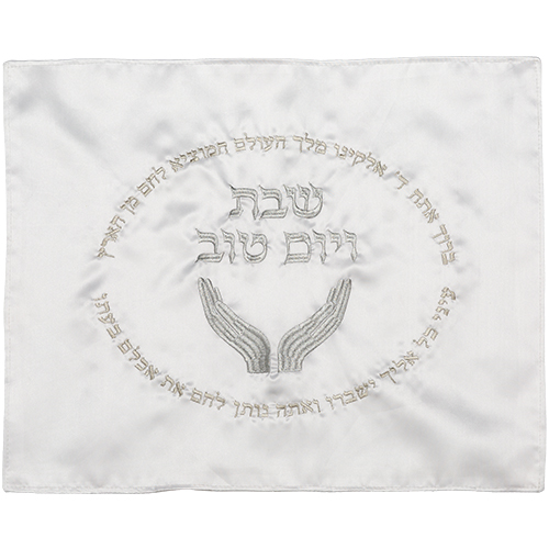 כיסוי חלה לבן מסטן עם ריקמה מהודרת 42×52 ס"מ