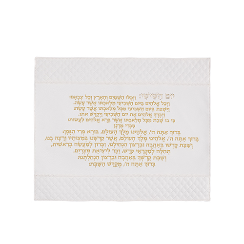 / 311 כיסוי חלה מהודר דמוי עור לבן עם ריקמה "קידוש" ואותיות בולטות 42×42 ס"מ