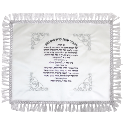 כיסוי חלה לבן מסטן עם ריקמה מהודרת 42×52 ס"מ