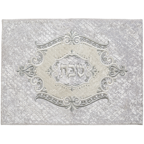 כיסוי חלה פיו שבת קודש עיטורים קטיפה אפור וכסף 60.5X45