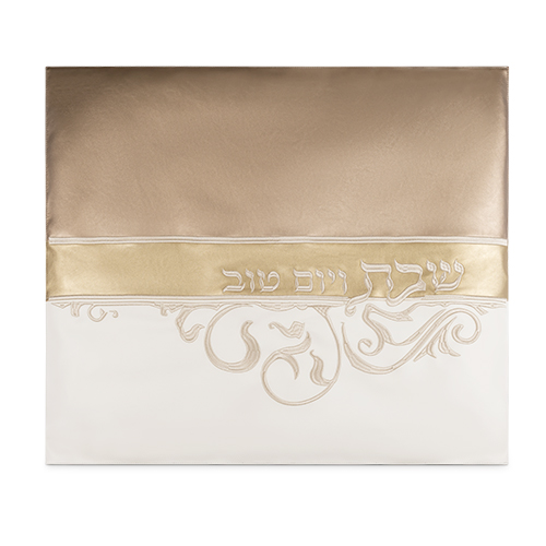 / כיסוי פלטה מהודר דמוי עור לבן ברונזה וזהב עם רקמה 80X70 ס"מ