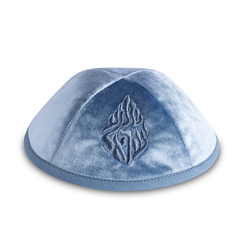 / כיפה ארטמן קטיפה כחול בהיר רקמה שמע ישראל גודל 3