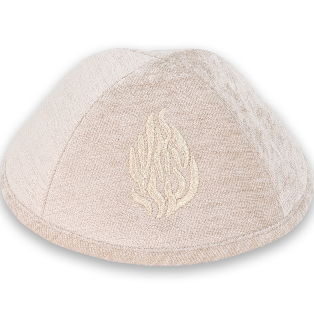 כיפה בד מהודר עם ריקמה "האש שלי" – גודל 4 – אופוויט