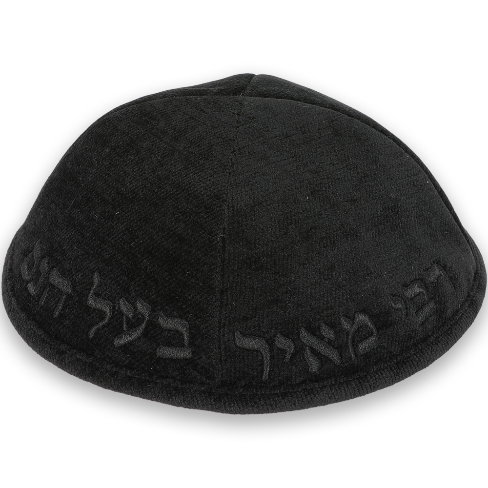 / כיפה בד מהודר עם ריקמה "רבי מאיר בעל הנס" – גודל 4 – שחור