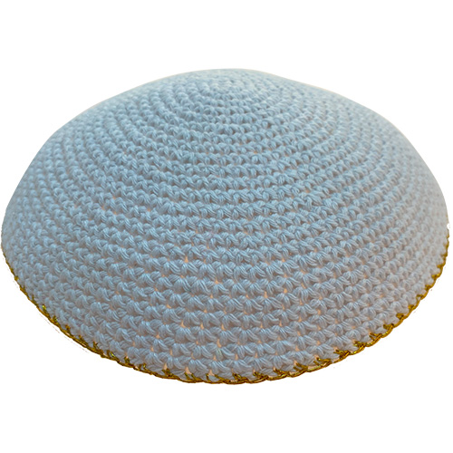 כמות של כיפה סרוגה 15 ס"מ לבן מסביב פס זהב