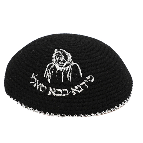 / כיפה סרוגה 16 ס"מ שחורה עם ריקמה "בבא סאלי" כסף