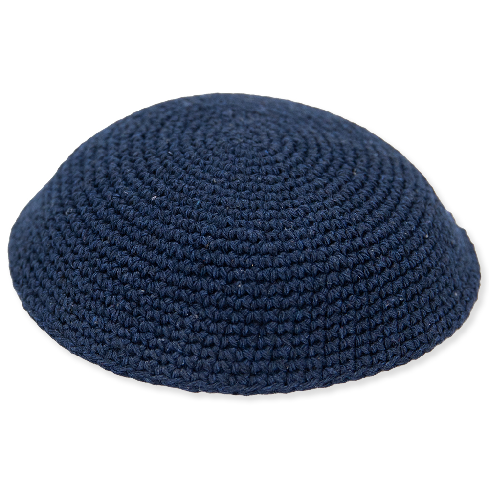כיפה סרוגה 17 ס"מ כחול כהה חלק – 12 יח