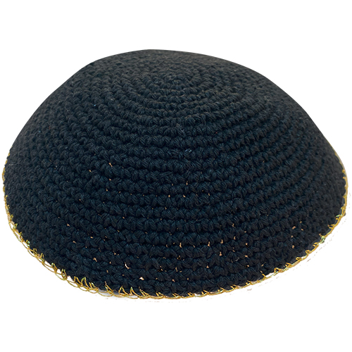 כיפה סרוגה 17 ס"מ שחור מסביב פס זהב