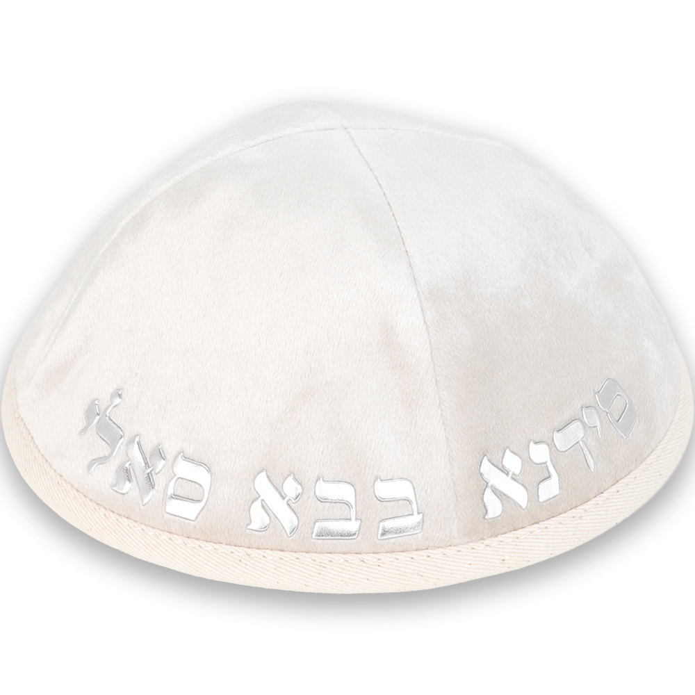 / כיפה קטיפה "ארט-מן" עם אותיות בולטות זהב "בבא סאלי" גודל 4 – פנינה