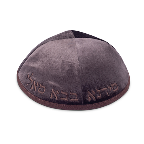 כיפה קטיפה "ארט-מן" עם ריקמה בבא סאלי גודל 3 – חום כהה
