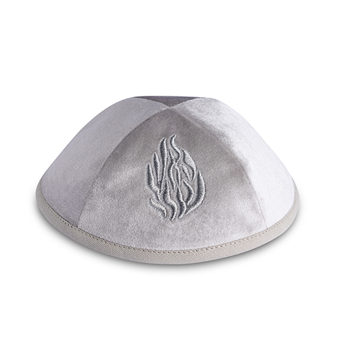 כיפה קטיפה "ארט-מן" עם ריקמה האש שלי גודל 3 – אפור בהיר