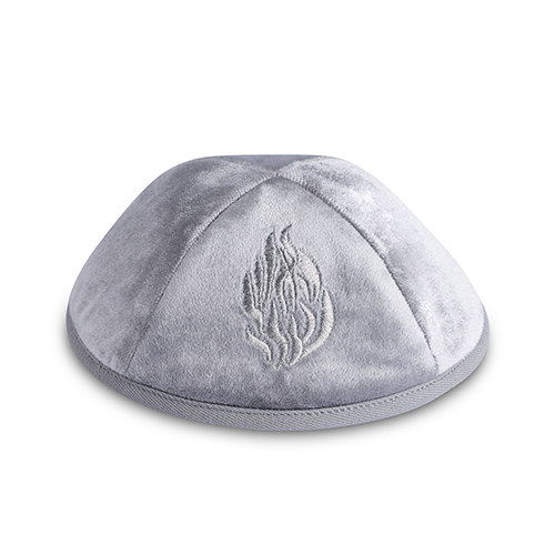 כיפה קטיפה "ארט-מן" עם ריקמה האש שלי גודל 3 – אפור