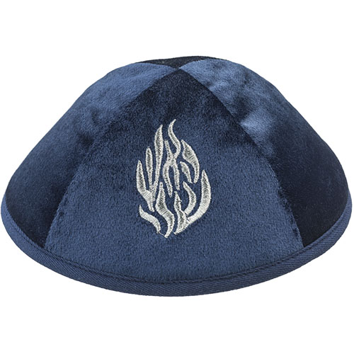 כיפה קטיפה "ארט-מן" עם ריקמה האש שלי גודל 4 – כחול