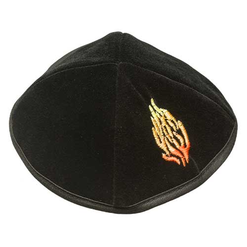 כיפה קטיפה "ארט-מן" עם ריקמה האש שלי גודל 4 – אפ