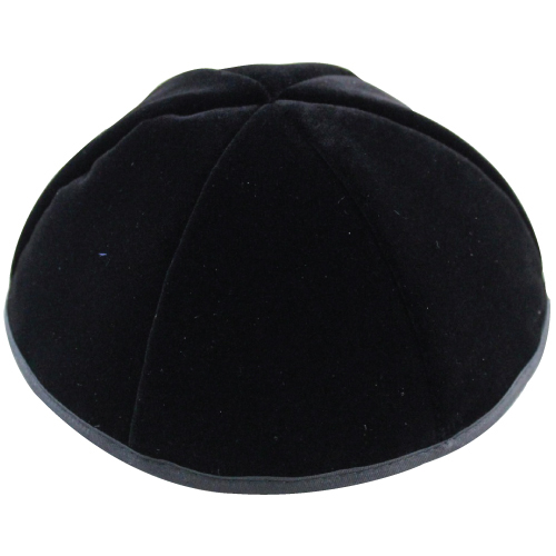 כיפה קטיפה פלוש שחורה 6 חלקים גודל 5 21 ס"מ עם סרט