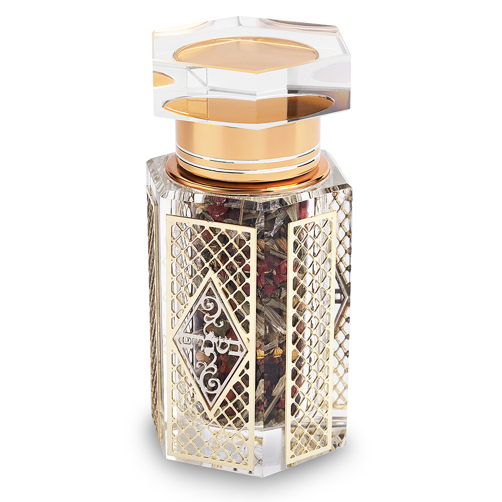 כלי לבשמים מקריסטל עם פלקטה "עיטור" 8.5*5 ס"מ עם פרחים