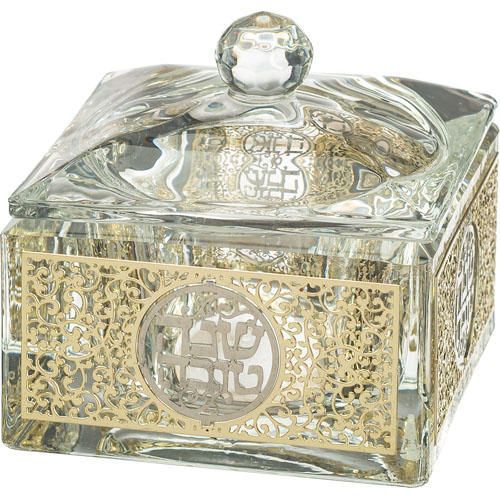 כלי מהודר לדבש מקריסטל עם פלקטה 7X7 ס"מ
