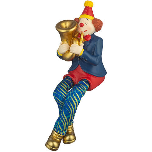 כמות של ליצן יושב מפוליריזן צבעוני עם רגלי בד מנגן בטרומבון