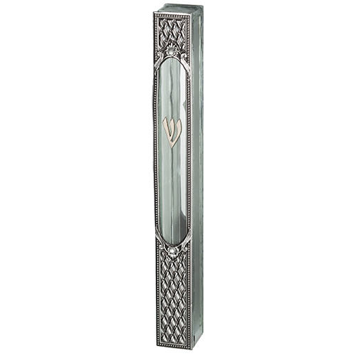 [[ מזוזה זכוכית מהודרת עם פלקטה "עיטורים" 15 ס"מ