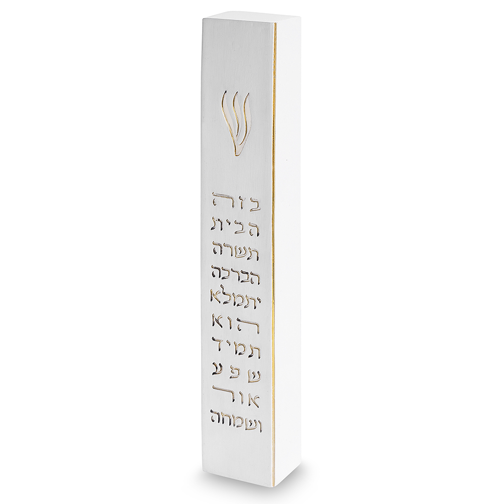 מזוזה פולימר ש שקועה זהב מבריק 12 סמ לבן