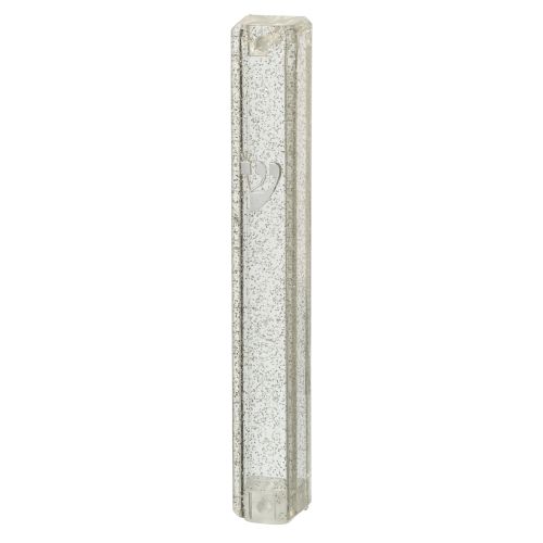 / מזוזה פלסטיק כסף מנוקד 10 ס"מ "ש" כסף עם פקק גומי