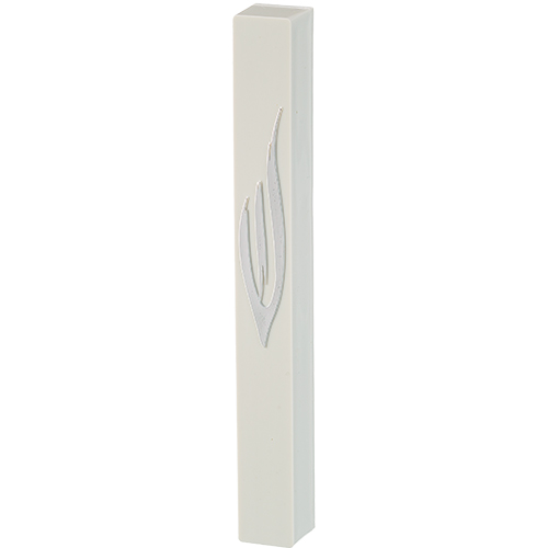 / מזוזה פלסטיק לבנה 15 ס"מ "ש" כסף עם פקק גומי