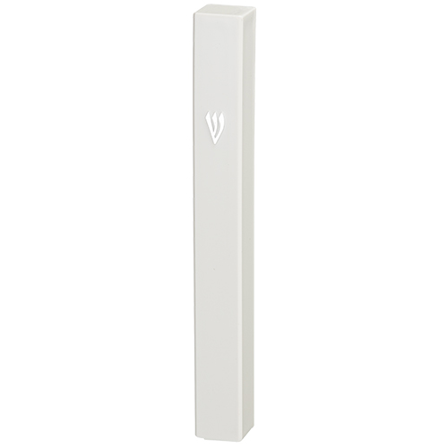 מזוזה פלסטיק 12 ס"מ לבנה "ש" כסף פקק גומי – ללא