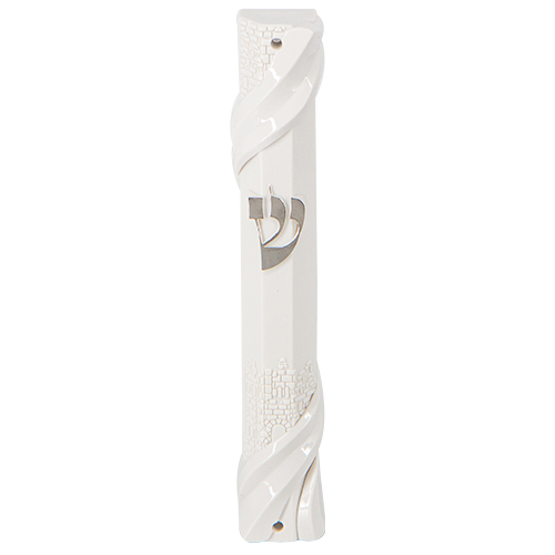 מזוזה פלסטיק 12 ס"מ לבנה "ש" כסף פקק גומי – ללא