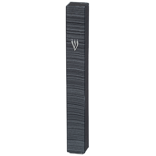 מזוזה פלסטיק פסים אפור 15 ס"מ "ש" כסף עם פקק גו
